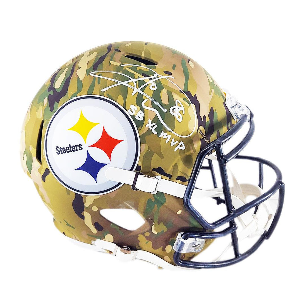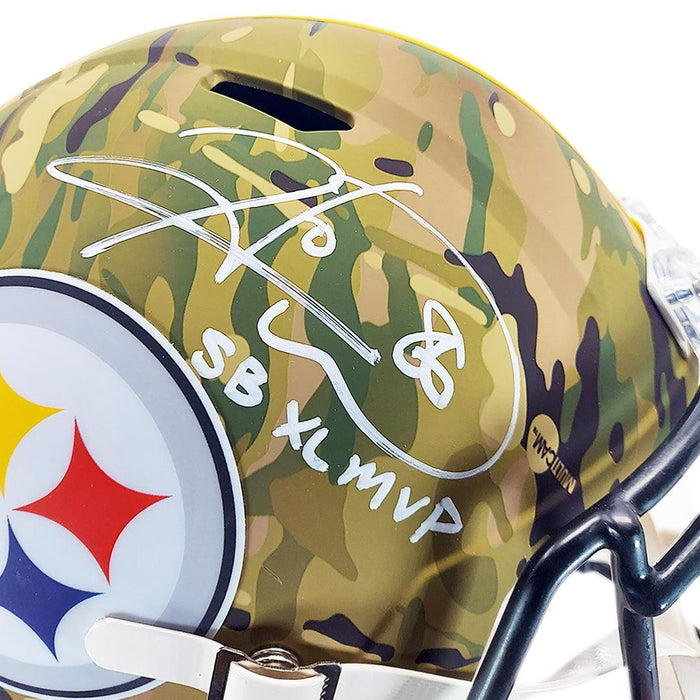 Hines Ward Signed Pittsburgh Steelers SB XL MVP Inscription Camo Speed Replica Full-Size Football Helmet (Beckett)