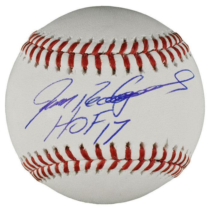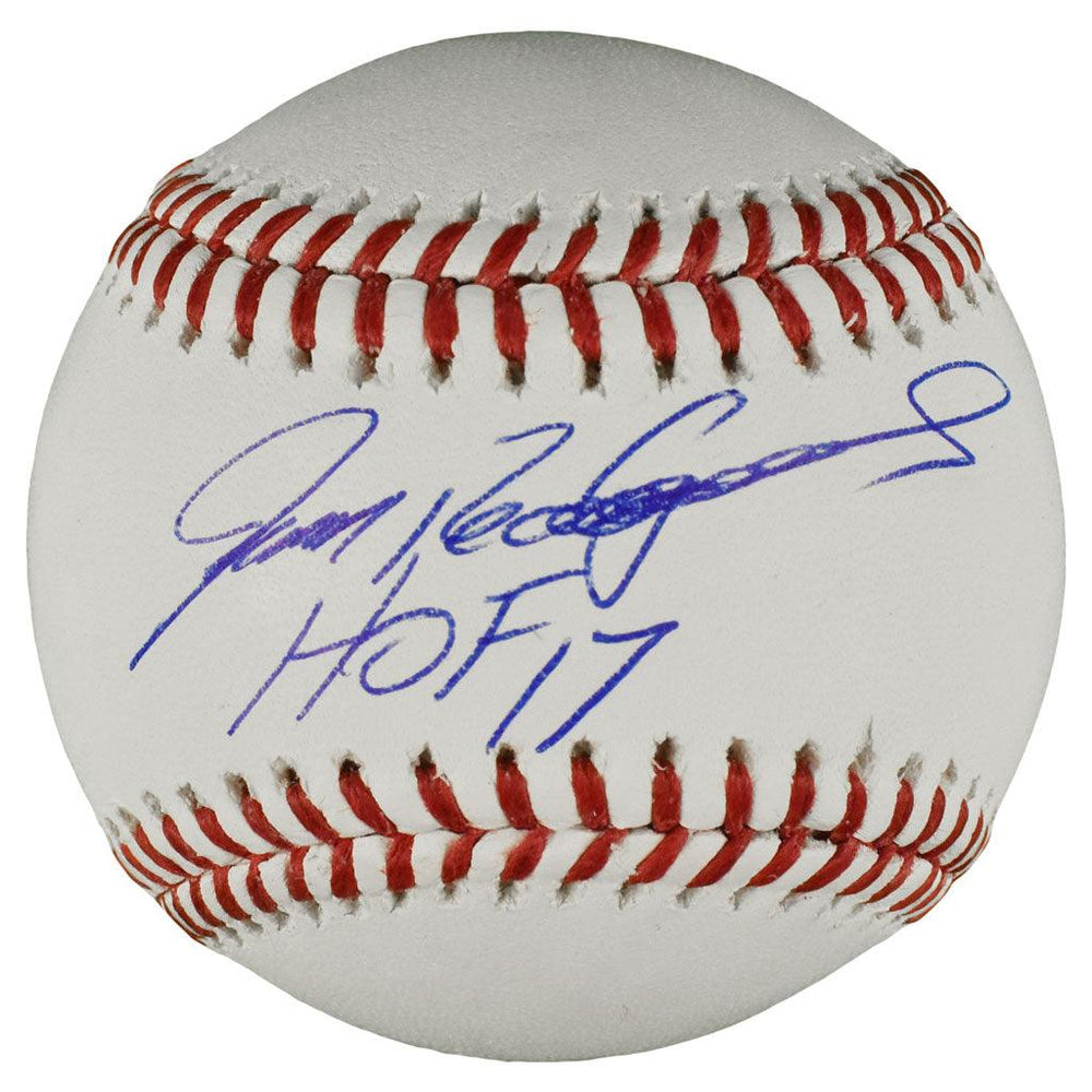 - An official MLB baseball autographed by Ivan Rodriguez with HOF 17 inscription and authenticated by JSA
