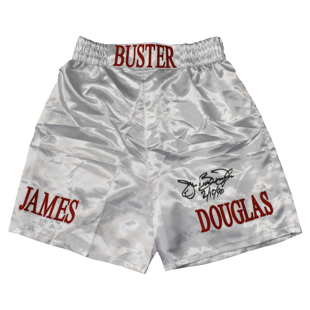 James "Buster" Douglas Autographed White Boxing Trunks 2-11-90 Inscription (JSA)