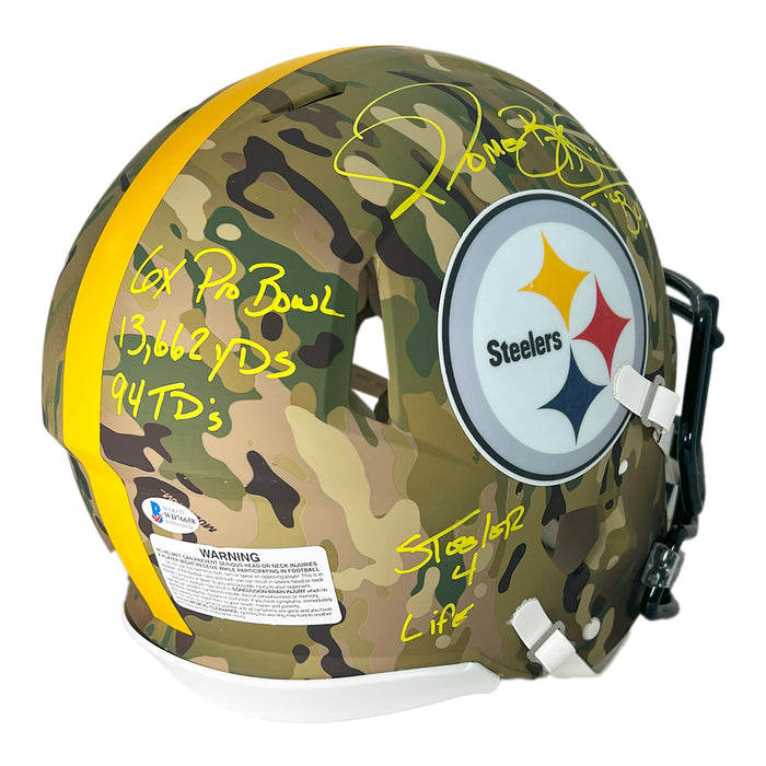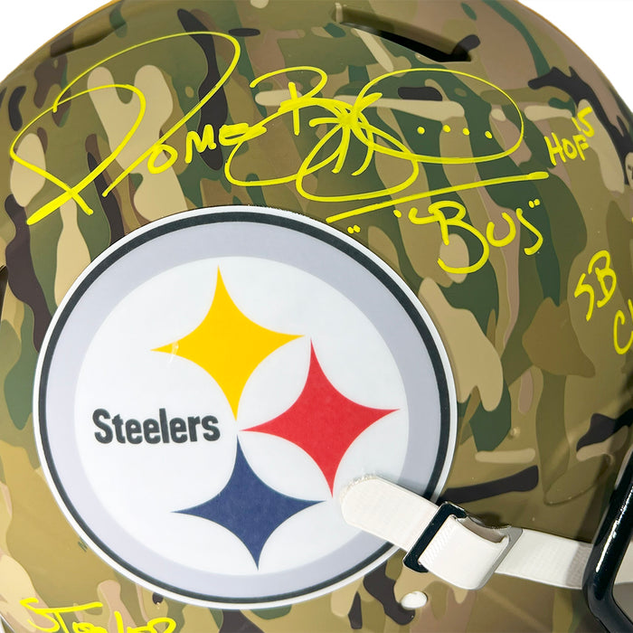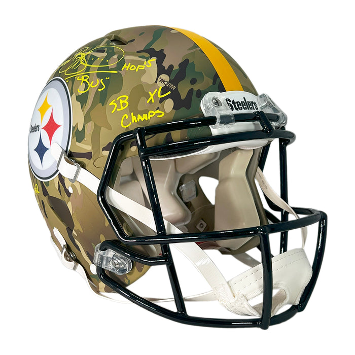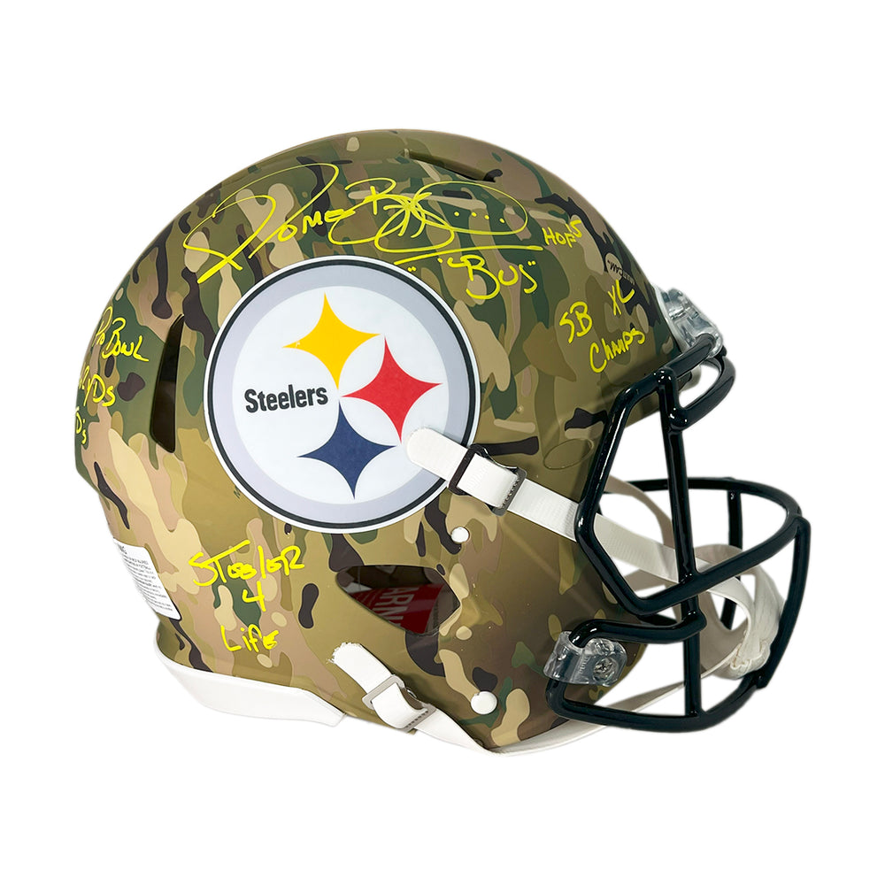 Jerome Bettis Signed Multi Inscription Pittsburgh Steelers Camo Authentic Speed Full-Size Football Helmet (Beckett)