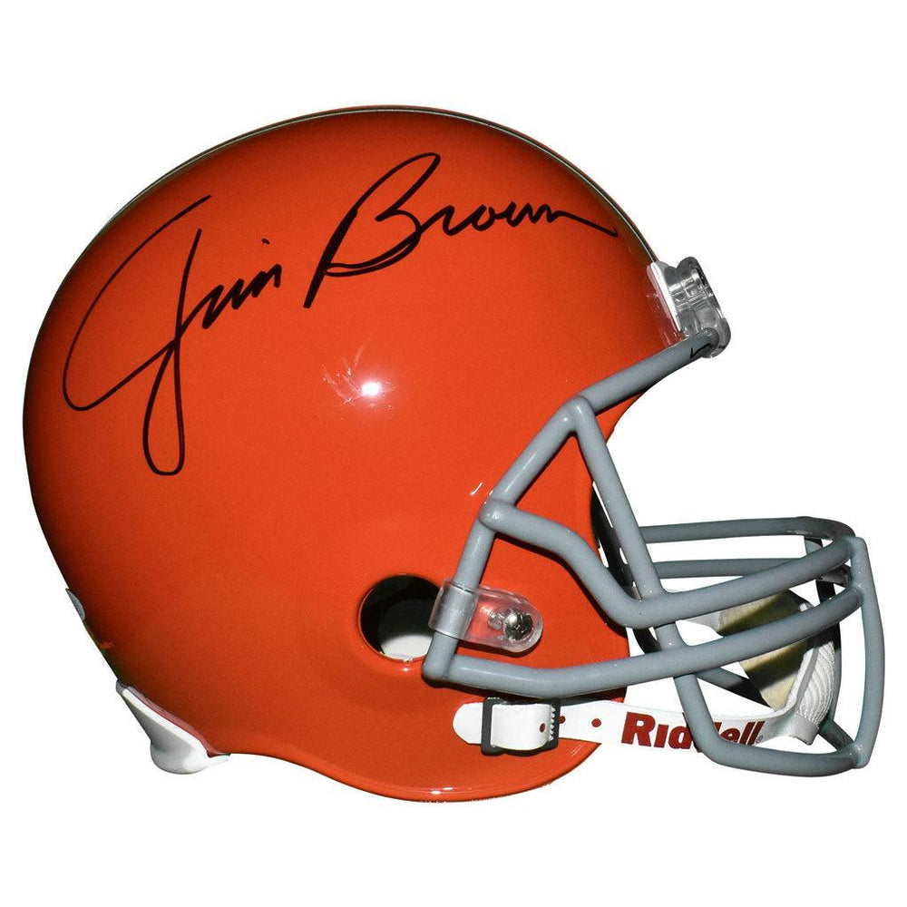 - A full-size replica Riddell NFL football helmet autographed by Jim Brown and authenticated by JSA