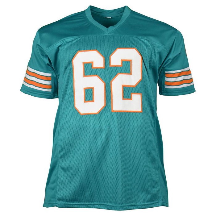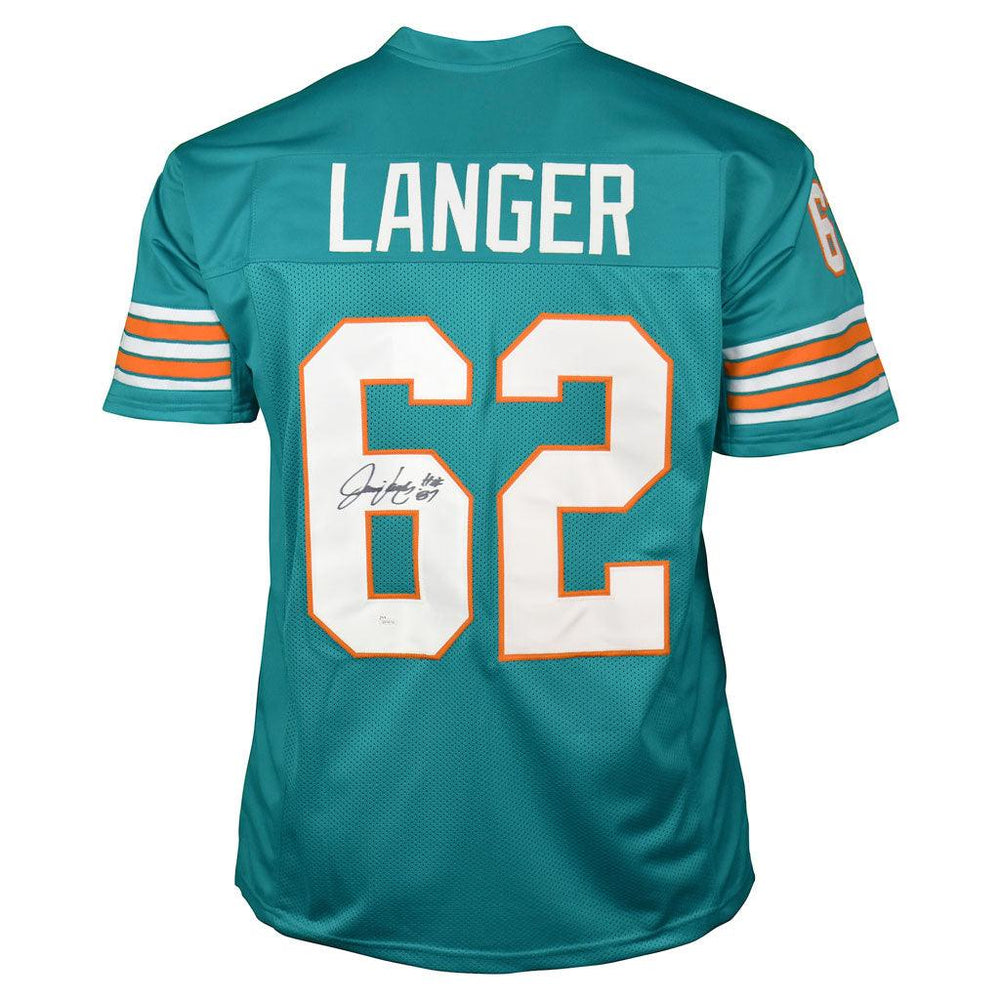 Jim Langer Signed HOF 87 Inscription Miami Pro Teal Football Jersey (JSA)