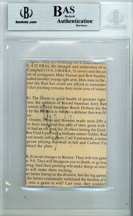 Jim Rice Autographed 2.5x4 Newspaper Page Photo Boston Red Sox Beckett BAS #9770098