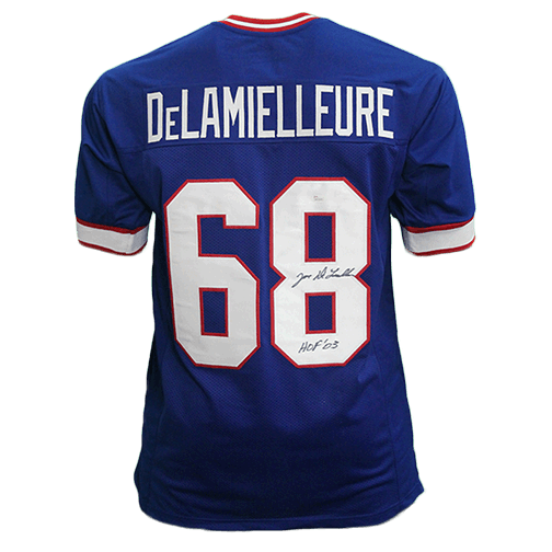 Joe DeLamielleure Autographed Pro Style Football Jersey Blue HOF 03 Inscription (JSA)