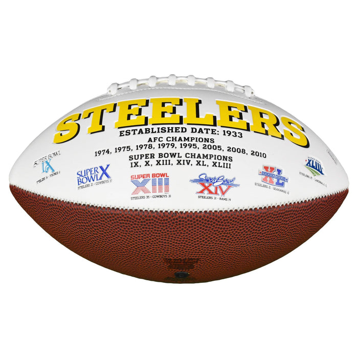 - A Pittsburgh Steelers stitched official logo football autographed by Joe Haden and authenticated by JSA