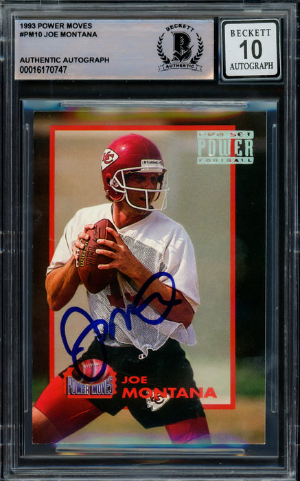 Joe Montana Autographed 1993 Pro Set Power Card #PM10 Kansas City Chiefs Auto Grade Gem Mint 10 Beckett BAS #16170747