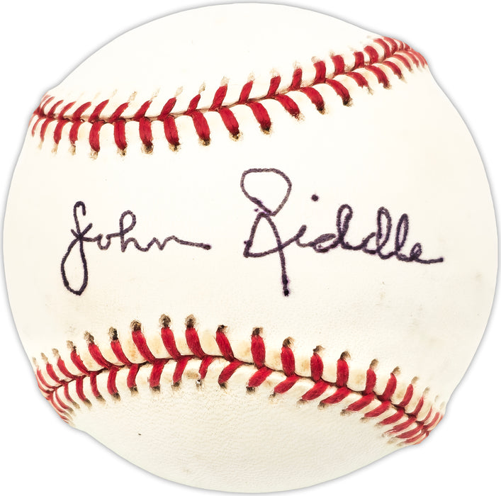This is an Official National League Baseball that has been hand signed by John Riddle. There is toning in the item as shown. This item has been certified authentic by Beckett Authentication (BAS) and comes with their tamper-proof QR Code hologram that can be verified on the Beckett-authentication.com.
