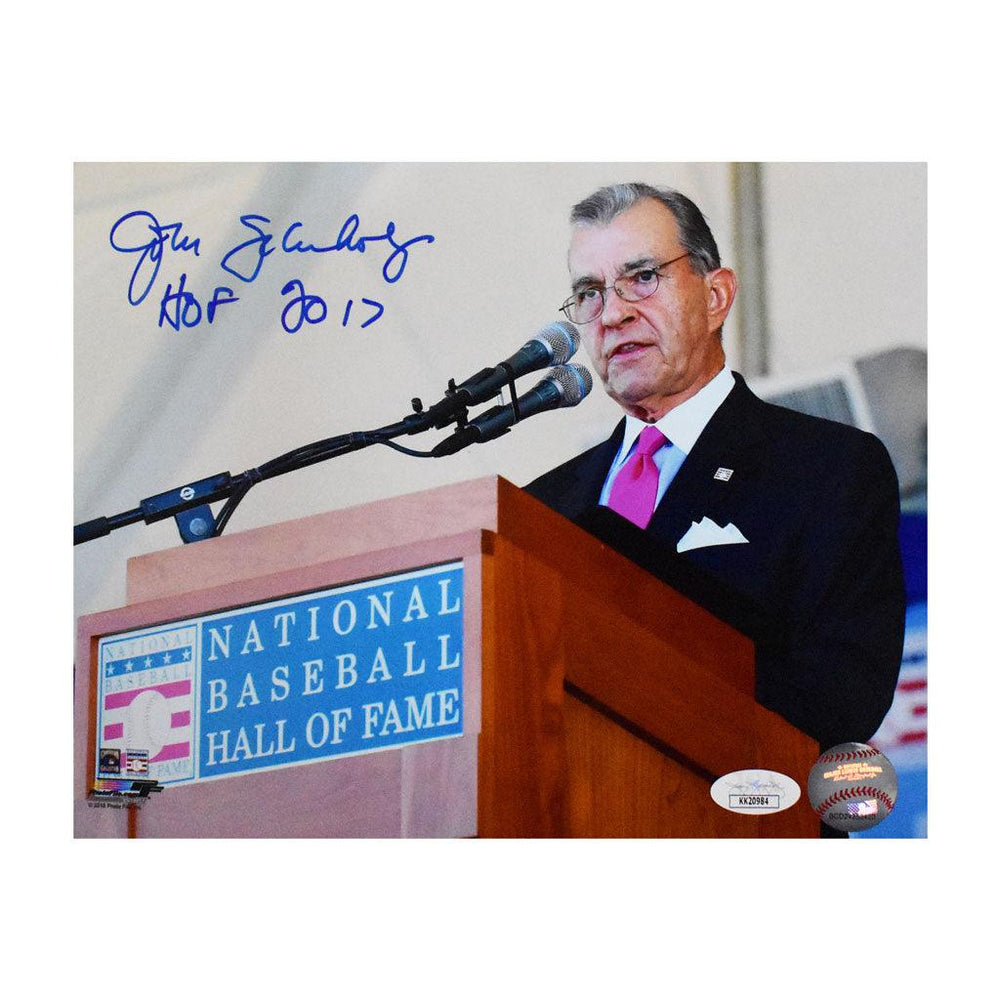 - A Atlanta Braves 8x10 photo autographed by John Schuerholz with HOF 2017 inscription and authenticated by JSA