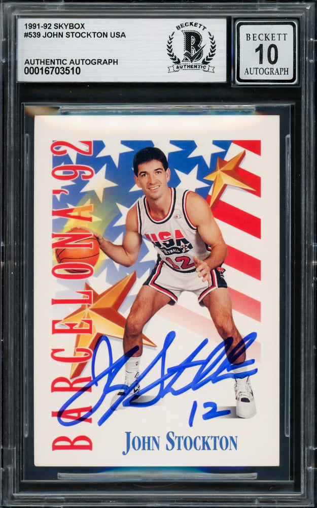 John Stockton Autographed 1991-92 Skybox Card #539 USA Dream Team Auto Grade Gem Mint 10 Beckett BAS #16703510