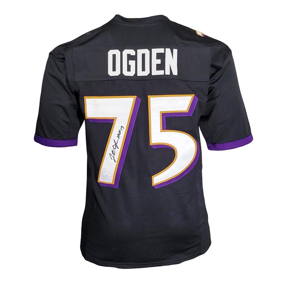 - A professional style black custom replica football jersey autographed by Jonathan Ogden with HOF 13 inscription and authenticated by JSA