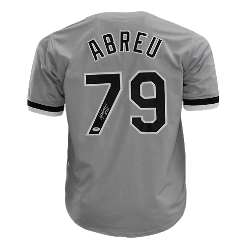 A professional-style Chicago baseball jersey autographed by Jose Abreu and authenticated by PSA.