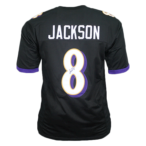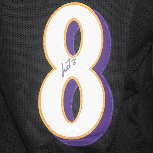 Lamar Jackson Autographed Pro Style Football Jersey Black (JSA)