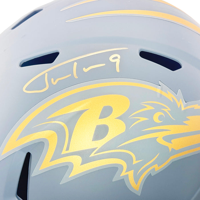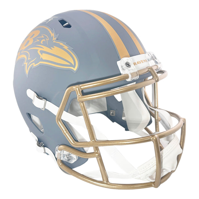 Justin Tucker Signed Baltimore Ravens Slate Alternate Speed Full-Size Replica Football Helmet (Beckett)