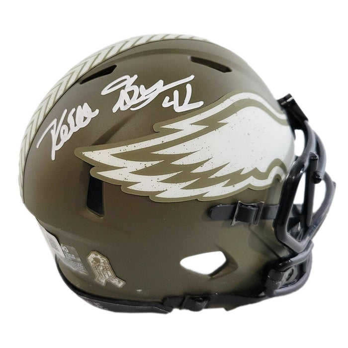 Keith Byars Signed Philadelphia Eagles Salute to Service Speed Mini Replica Football Helmet (Beckett)