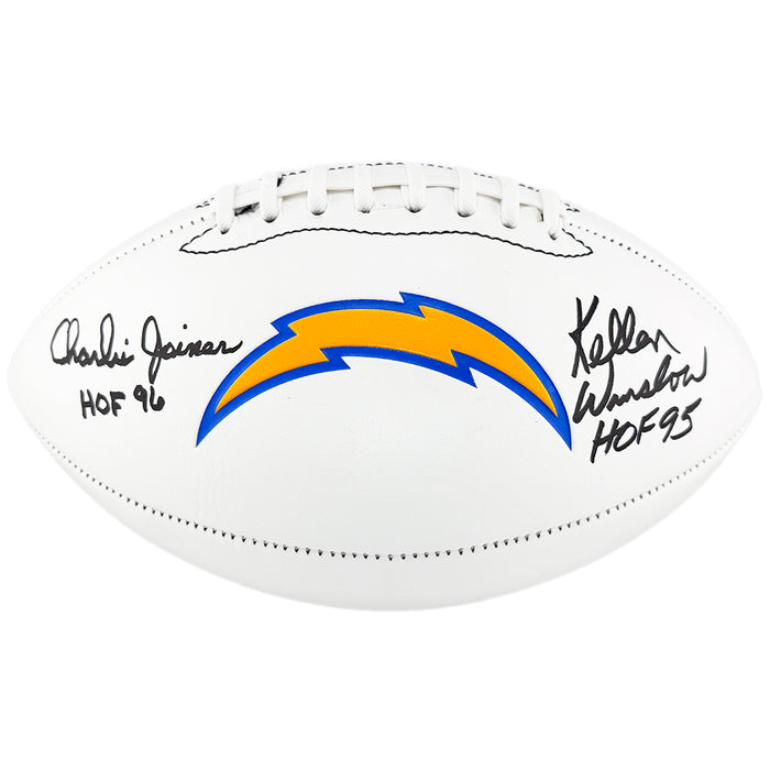 Kellen Winslow and Charlie Joiner Signed HOF 95, HOF 96 Inscription Los Angeles Chargers Official NFL Team Logo Football (Beckett)
