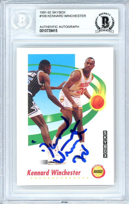Kennard Winchester Autographed 1991-92 Skybox Rookie Card #109 Houston Rockets Beckett BAS #10739415
