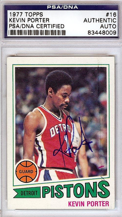 This is a 1977 Topps Card that has been hand signed by Kevin Porter. It has been authenticated by PSA/DNA and comes encapsulated in their tamper-proof holder.