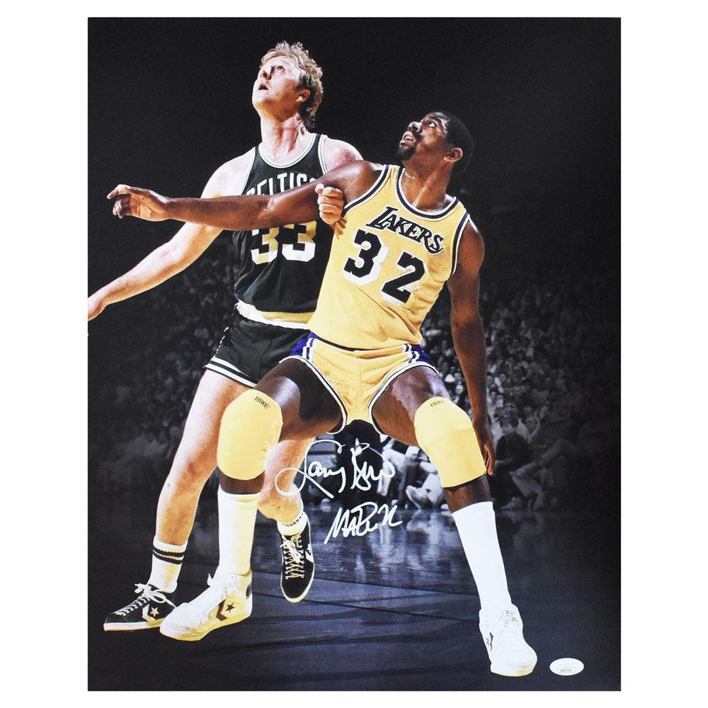 Larry Bird/Magic Johnson Signed Celtics/Lakers 16x20 Black Out Photo (JSA)