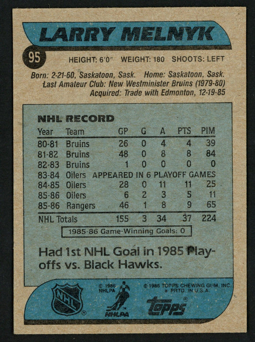 Larry Melnyk Autographed 1986-87 Topps Card #95 New York Rangers SKU #151991