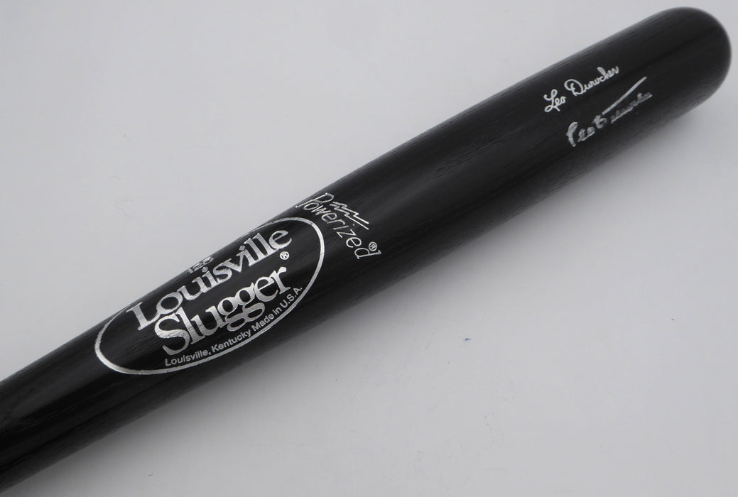 This is a Louisville Slugger Model Bat that has been hand signed by Leo Durocher. This item has been certified authentic by Beckett Authentication (BAS) and comes with their tamper-proof QR Code sticker that can be verified on the Beckett-authentication.com.