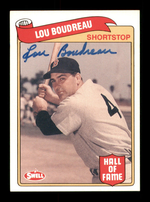 Lou Boudreau Autographed 1989 Swell Baseball Greats Card #80 Boston Red Sox SKU #189068