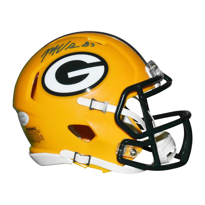 Marquez Valdes-Scantling Signed Green Ink Green Bay Packers Speed Mini Replica Yellow Football Helmet (JSA)