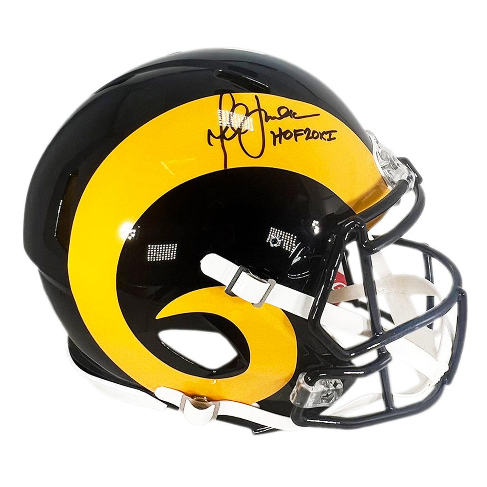 - A full-size authentic Riddell Speed NFL football helmet autographed by Marshall Faulk with HOF 20XI inscription and authenticated by Beckett