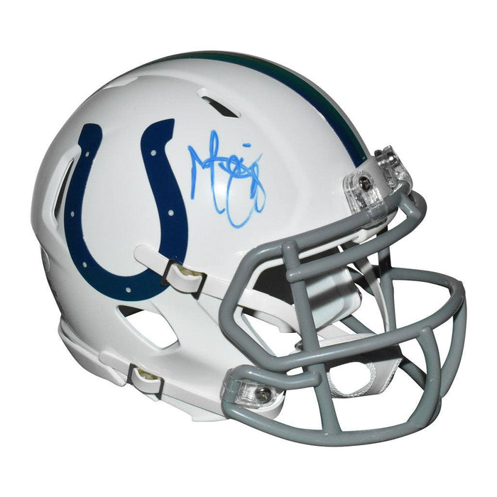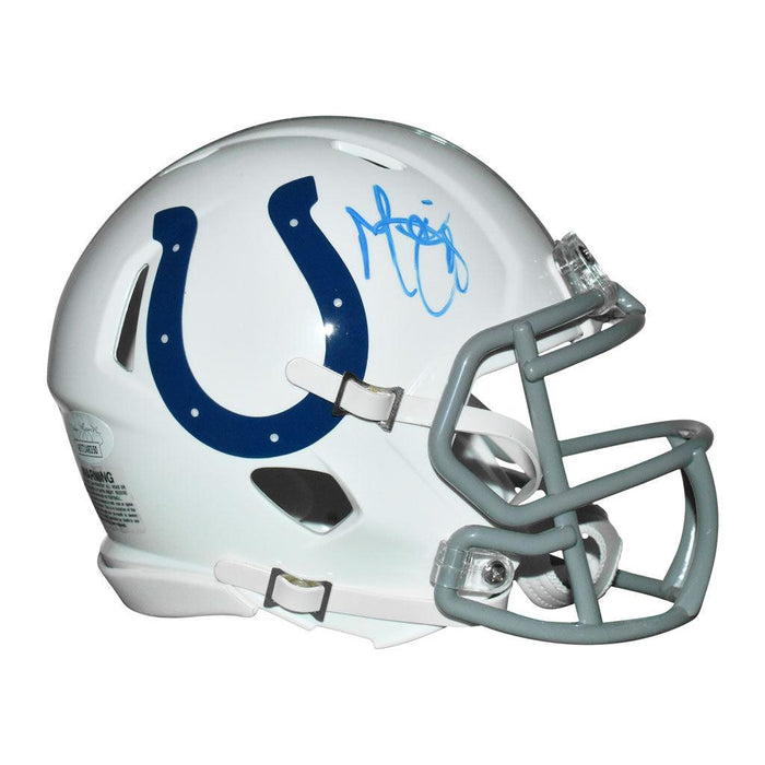 - A mini Riddell Speed NFL football helmet autographed by Marvin Harrison and authenticated by JSA
