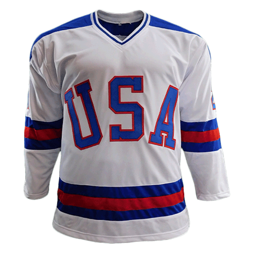 Mike Eruzione Autographed Team USA Olympic Jersey White w/ JSA Certificate of Authenticity