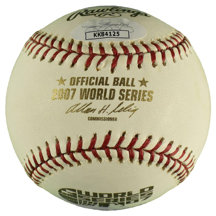 Mike Lowell Signed WS MVP Inscription Rawlings Official MLB 2007 World Series Baseball (JSA)