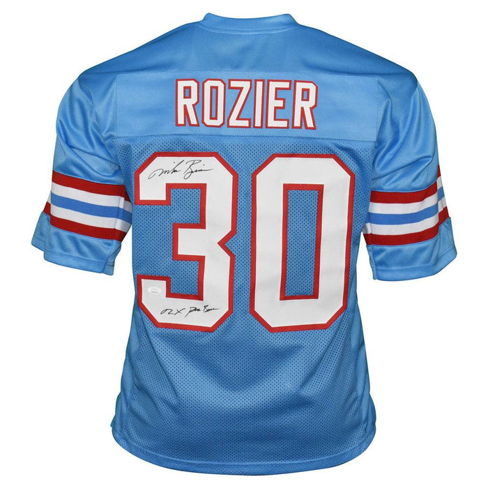 - A professional style blue custom replica football jersey autographed by Mike Rozier and authenticated by JSA