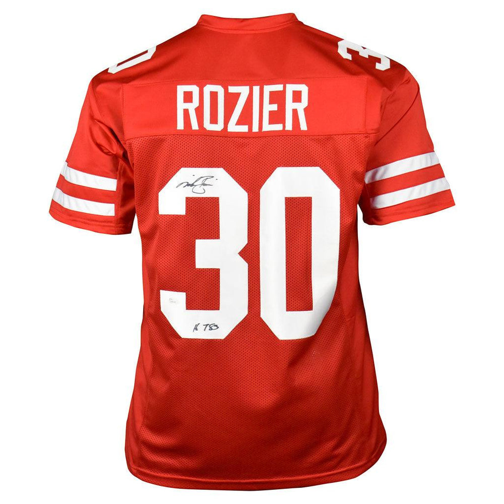 - A custom replica football jersey autographed by Mike Rozier with HT 83 inscription and authenticated by JSA