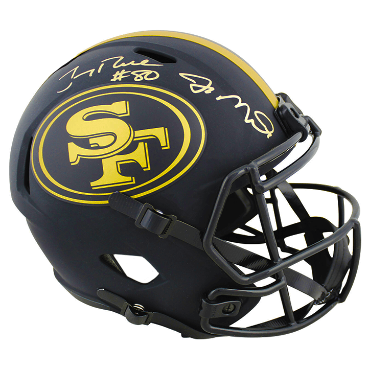 - A full-size Riddell Eclipse Speed NFL football helmet autographed by Joe Montana and Jerry Rice and authenticated by JSA