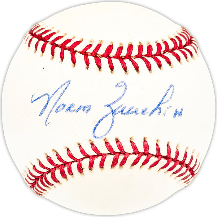 This is an Official American League Baseball that has been hand signed by Norm Zauchin. This item has been certified authentic by Beckett Authentication (BAS) and comes with their tamper-proof QR Code hologram that can be verified on the Beckett-authentication.com.
