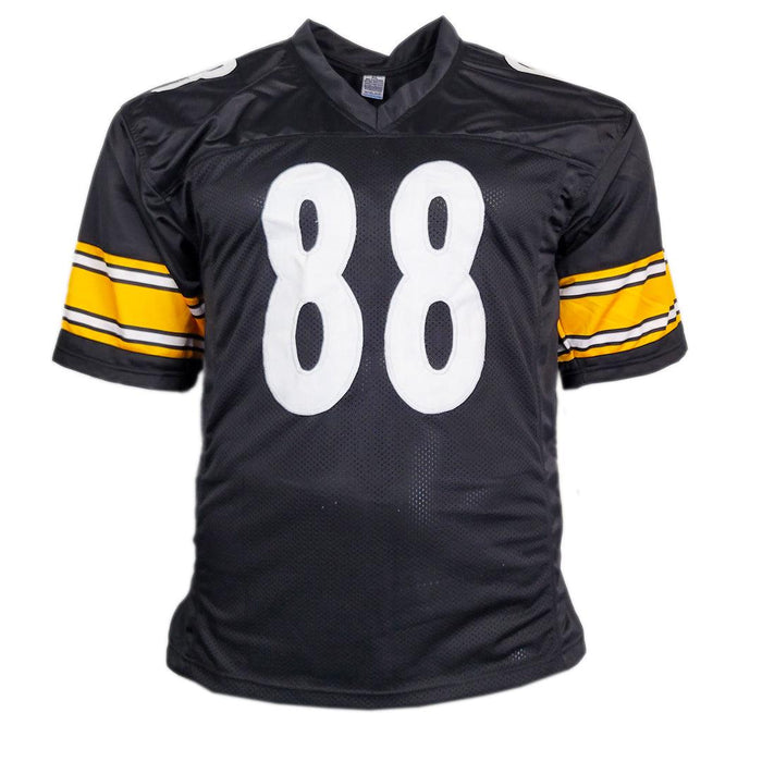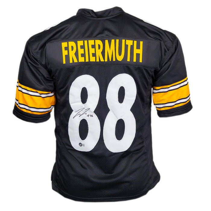 - A professional style black custom replica football jersey autographed by Pat Freiermuth and authenticated by Beckett