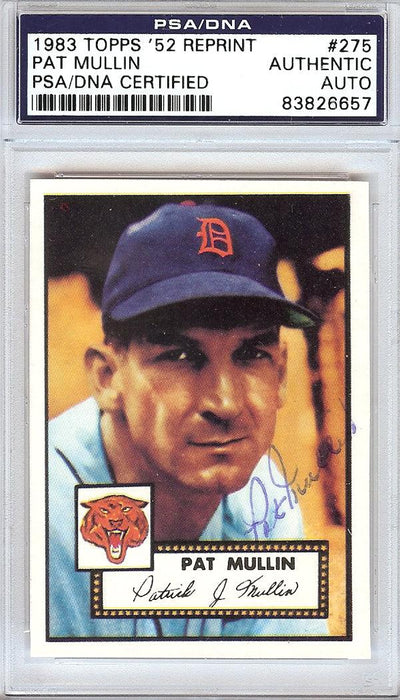 This is a 1952 Topps Reprint Card #275 that thas been hand signed by Pat Mullin. It has been authenticated by PSA/DNA and comes encapsulated in their tamper-proof holder.