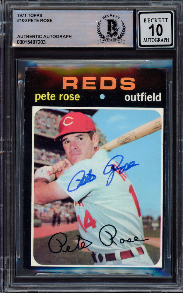 Pete Rose Autographed 1971 Topps Card #100 Cincinnati Reds Auto Grade Gem Mint 10 Beckett BAS #15497203