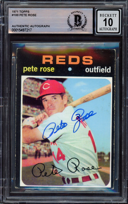 Pete Rose Autographed 1971 Topps Card #100 Cincinnati Reds Auto Grade Gem Mint 10 Beckett BAS #15497217