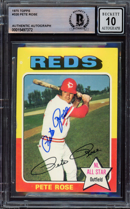Pete Rose Autographed 1975 Topps Card #320 Cincinnati Reds Auto Grade Gem Mint 10 Beckett BAS #15497372