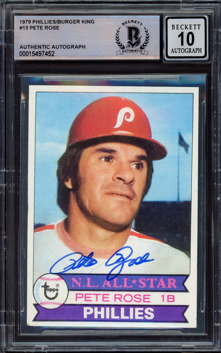 Pete Rose Autographed 1979 Topps Burger King Card #13 Philadelphia Phillies Auto Grade Gem Mint 10 Beckett BAS #15497452