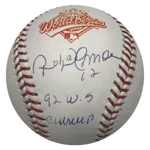 Roberto Alomar Autographed 1992 World Series Official Major League Baseball (JSA) World Series Champs Inscription