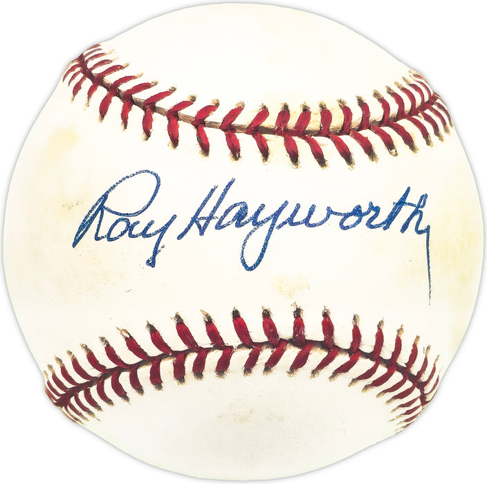 This is an Official American League Baseball that has been hand signed by Ray Hayworth. There is toning in the item as shown. This item has been certified authentic by Beckett Authentication (BAS) and comes with their tamper-proof QR Code hologram that can be verified on the Beckett-authentication.com.