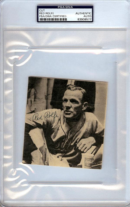 This is a 4x4 Newspaper Page Photo that has been hand signed by Red Rolfe. It has been certified authentic by PSA/DNA and comes encapsulated in their tamper-proof holder.