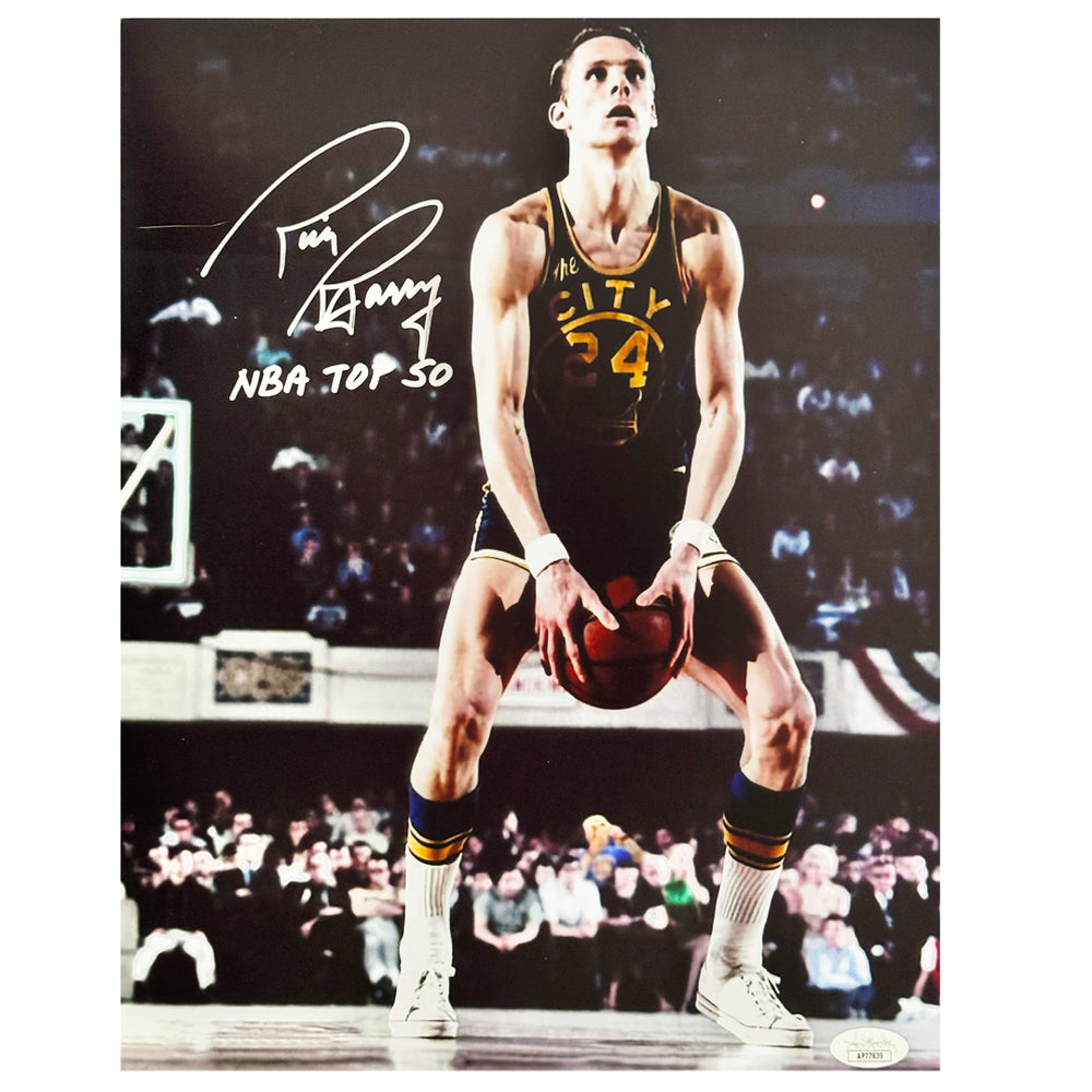 - A professional basketball photo autographed by Rick Barry with NBA Top 50 inscription and authenticated by JSA