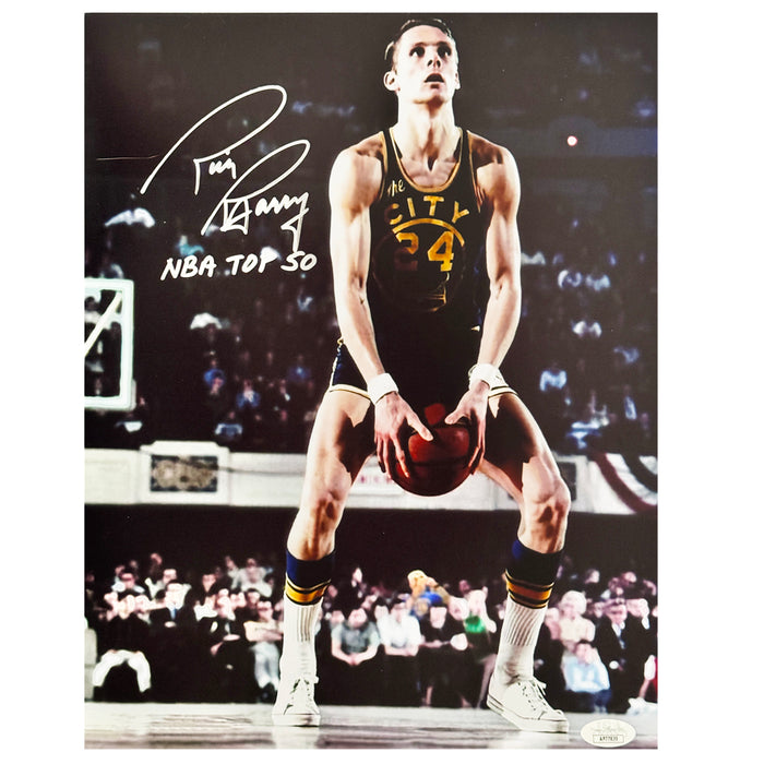Rick Barry Signed NBA Top 50 Inscription Pose 5 Basketball 11x14 Photo (JSA)