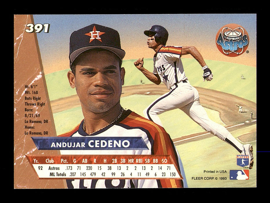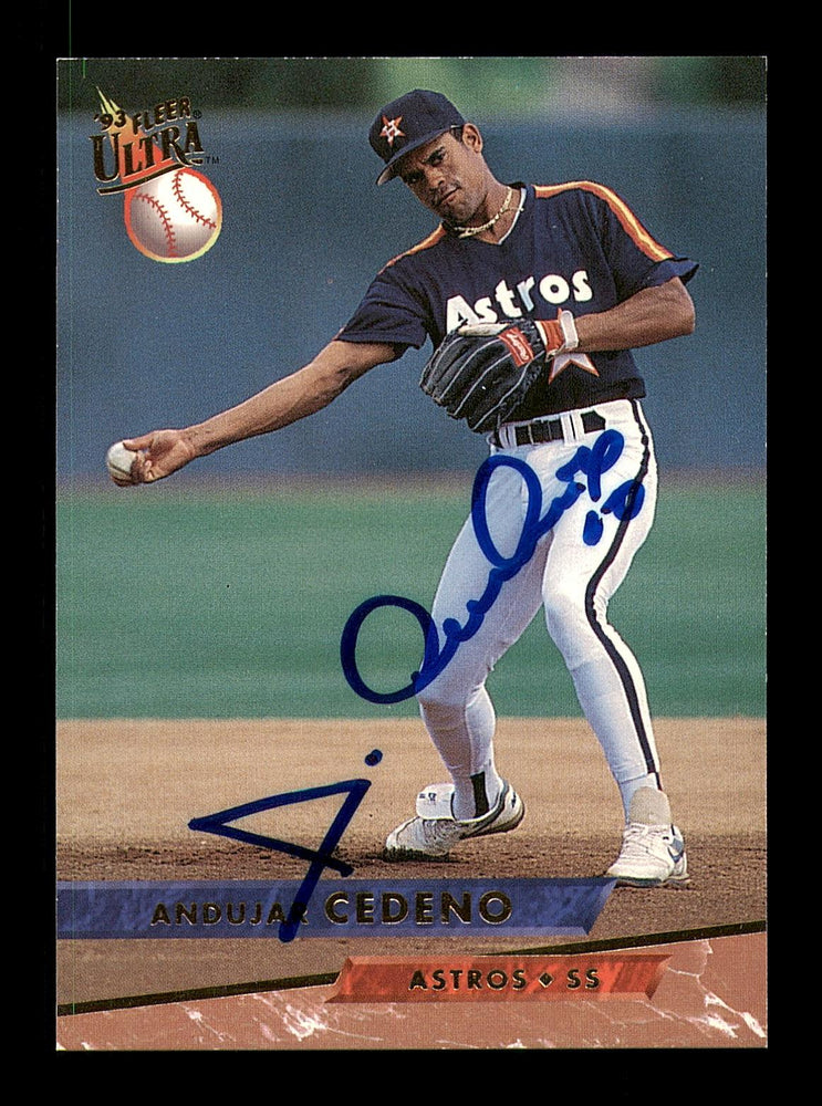 Roger Cedeno Autographed 1993 Fleer Ultra Card #391 Houston Astros SKU #184005