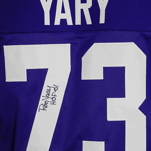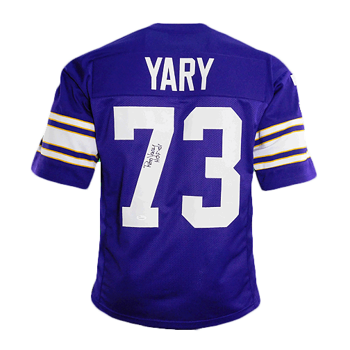 - A professional style purple custom replica football jersey autographed by Ron Yary with HOF 01 inscription and authenticated by JSA
