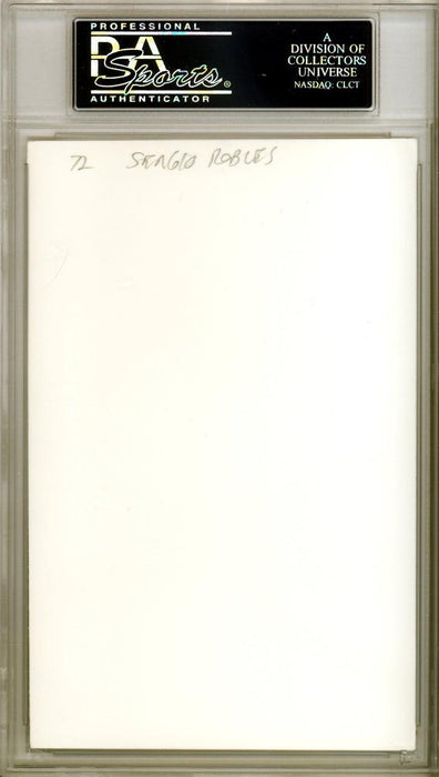 This is a 3.5x5.5 Photo that has been hand signed by Sergio Robles. It has been certified authentic by PSA/DNA and comes encapsulated in their tamper-proof holder.