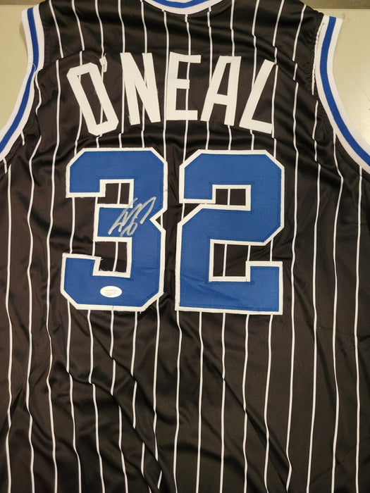 - A professional style black custom replica basketball jersey autographed by Shaq O'Neal and authenticated by JSA
