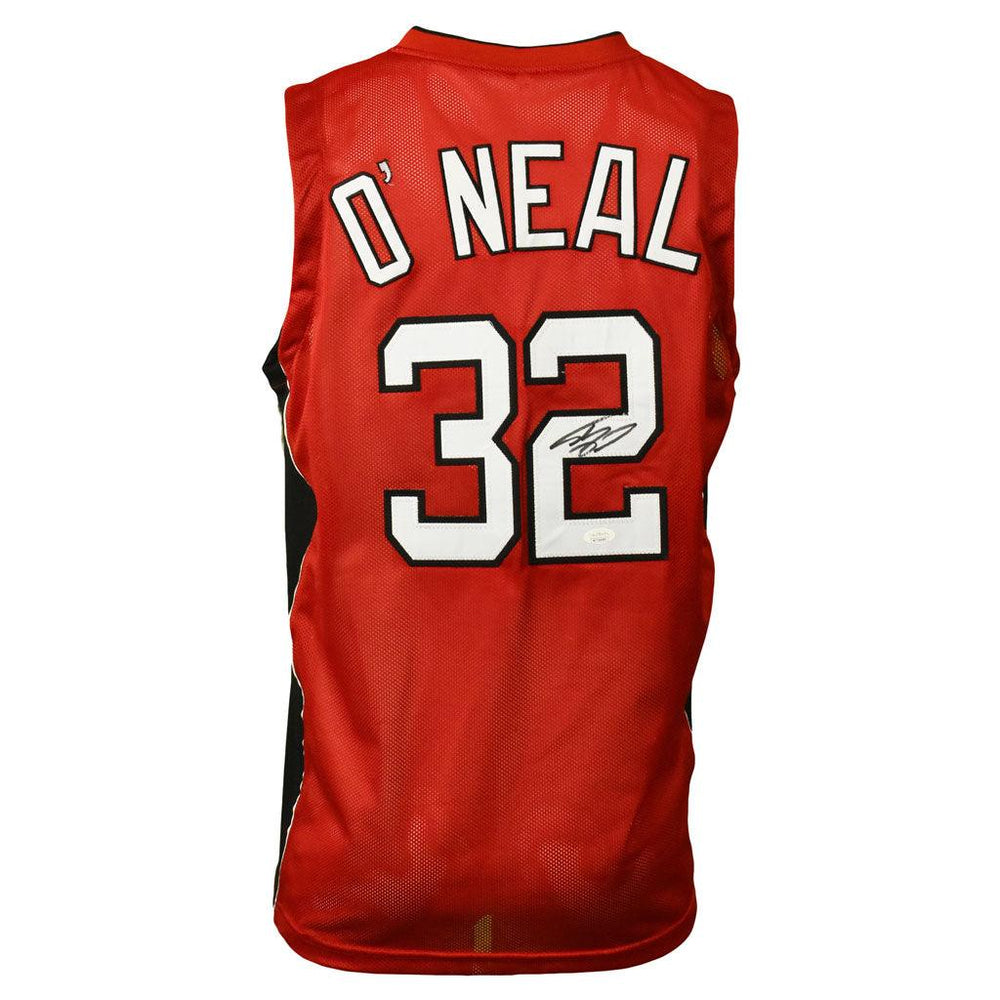 - A professional style red custom replica basketball jersey autographed by Shaquille O'Neal and authenticated by JSA